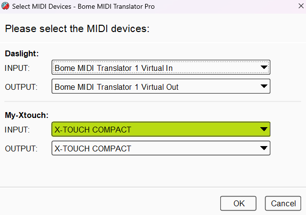 I also have a MIDI thru path set from My-Xtouch to Daslight for anything that does not go through a translator.
