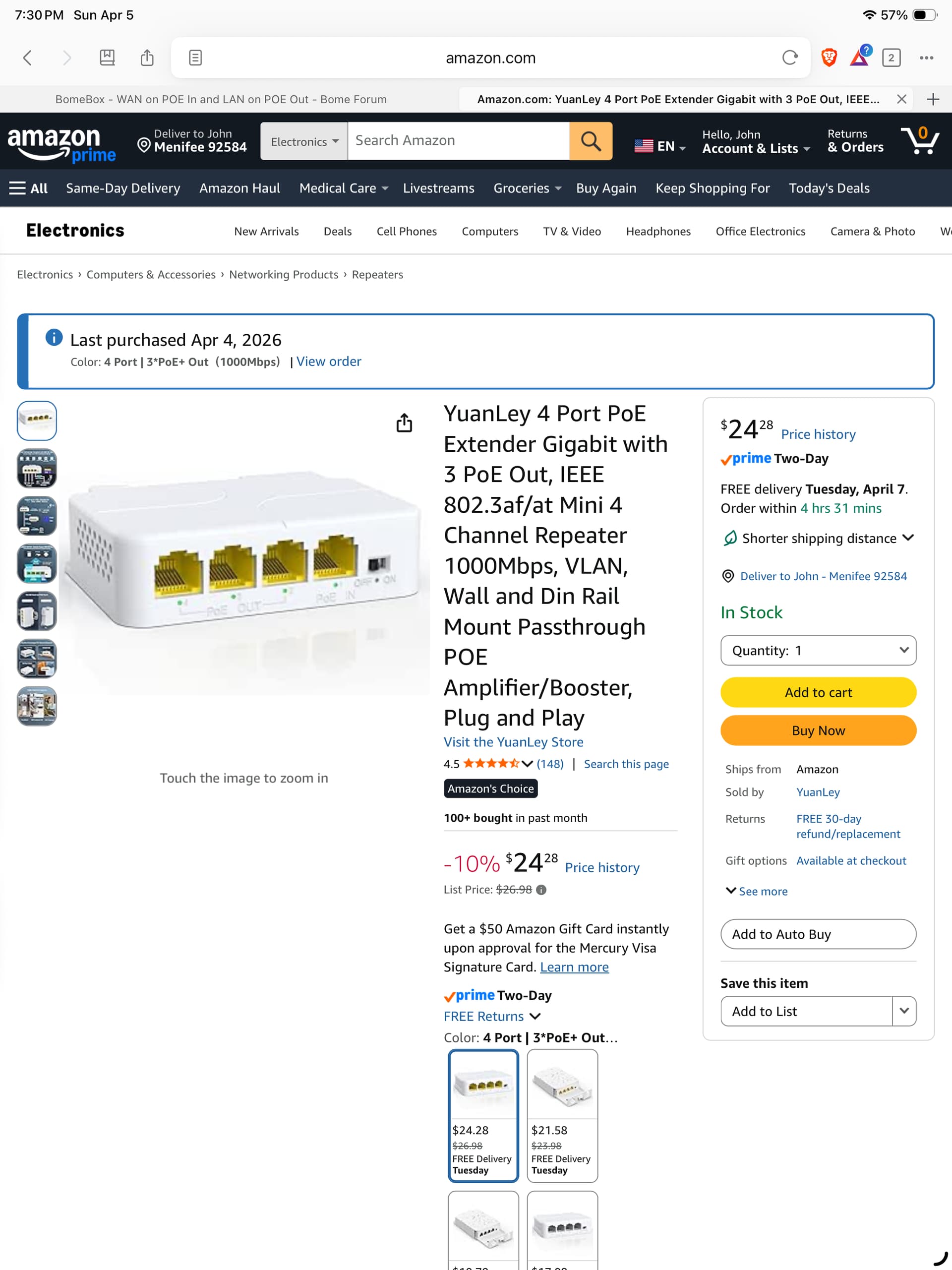 As opposed to powering the BOMEBOX with a POE switch, I powered the BOMEBOX POE IN directly, then used the POE pass through of the BOMEBOX to power a switch (POE EXTENDER) from the BOMEBOX POE OUT.