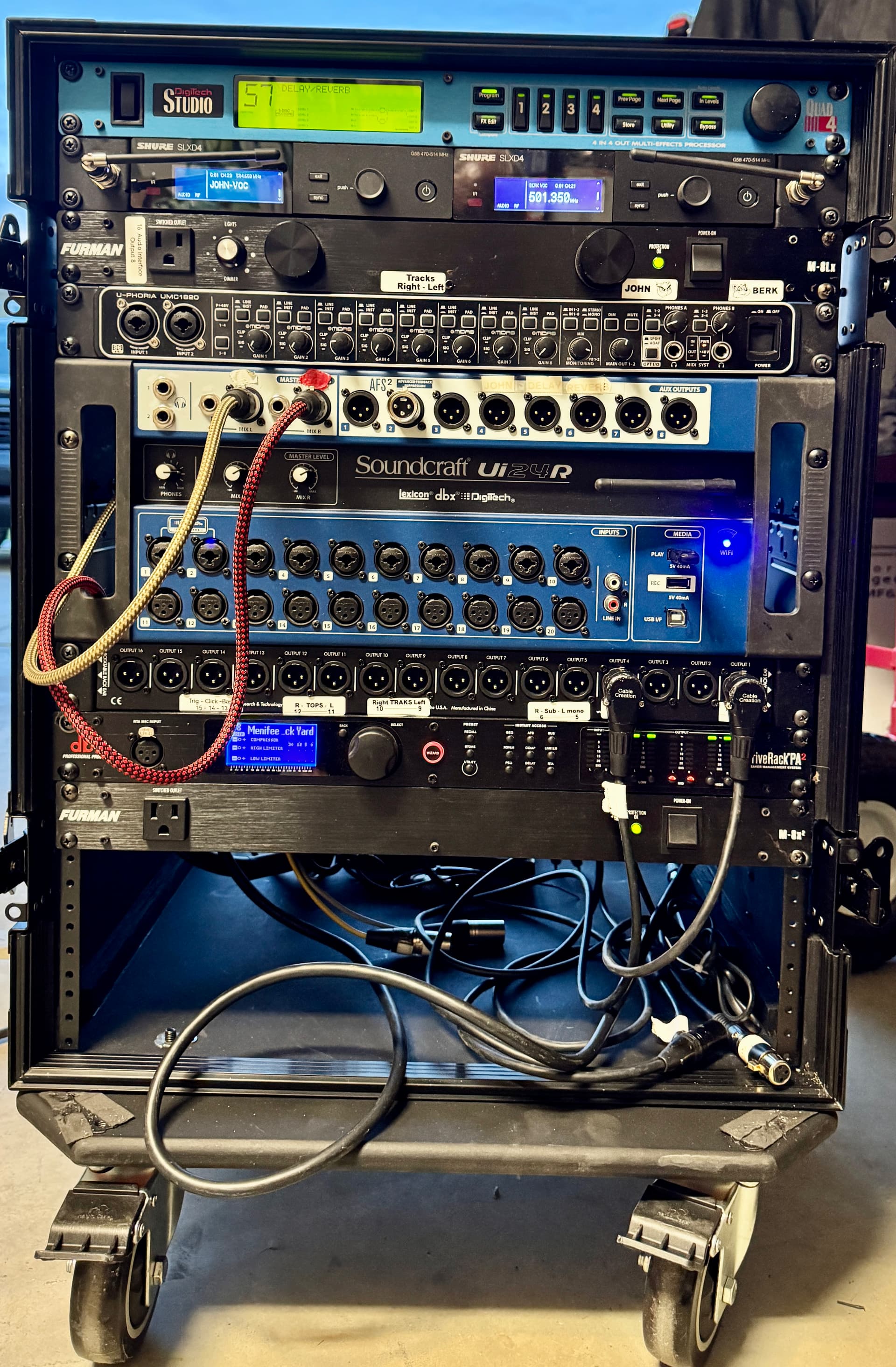 Thus, the BOMEBOX is my BOME NETWORK-enabled WIFI router giving me control over my Ethernet devices such as my mixing console (UI24R) and active crossover (dbx driverackPA2), while giving me wireless control of my StudioQuad (multi-effects processor) program change and parameters via MIDI OUT from the BOMEBOX using only 1 plug for power