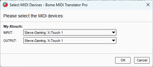 My Aliases are set up as follows. You will need them set up to point to your X-Touch. You also need your X-Touch in MC mode.