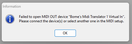 I already created an empty project with no presets and also unchecked “Use virtual MIDI ports”. Also no MIDI Ports are checked in the settings so how can I get rid of this error?
