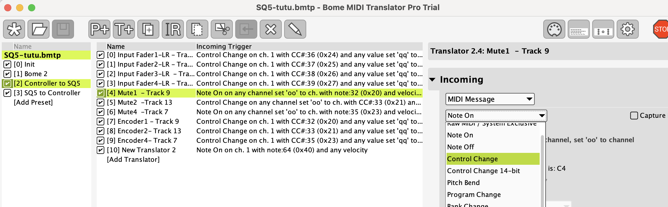 I’m having trouble automating the mute/unmute functions on my Allen & Heath SQ-5 console with Logic Pro.