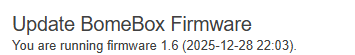 What is the reported firmware version of BomeBox and the reported version of Bome Network?
