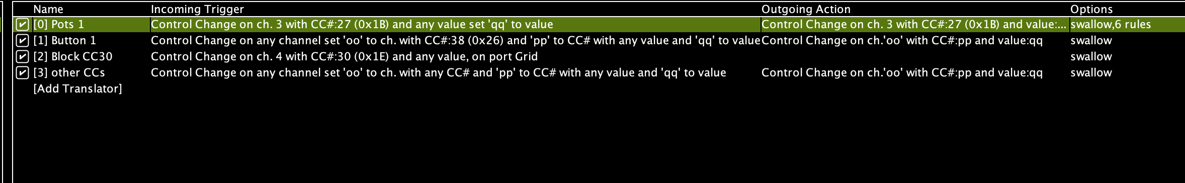 The issue is that my software receive both program change messages with the other translator as well as the CC30 even tho I created a preset with ‘none’ on the output.