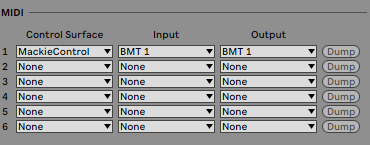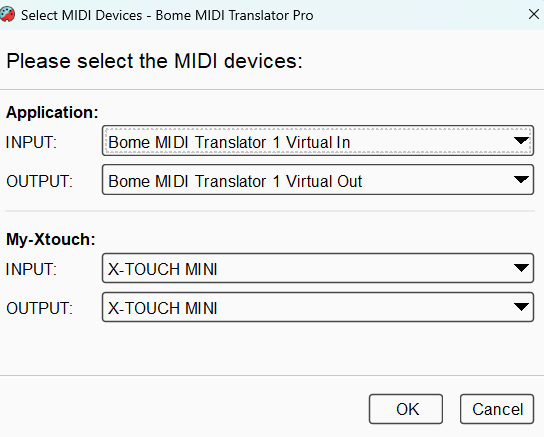 First, I assign aliases to my X-touch-MINI and to the ports that will be used by my Mackie MCU application. I used Ableton Live for testing.